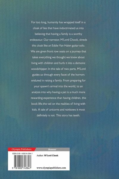 For too long, humanity has wrapped itself in a cloak of lies that have indoctrinated us into believing that having a family is a worthy endeavour. Our narrator, M'Lord Chook, shreds this cloak like an Eddie Van Halen guitar solo. We are given front row seats on a journey that takes everything we thought we knew about living with children and hurls it into a demonic woodchipper.