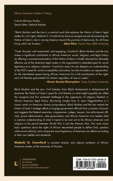 Black Muslims and the Law examines the Nation of Islam’s struggle for religious freedom from World War II to the Vietnam War through the lives of key members, such as Elijah Muhammad and Muhammad Ali. In doing so, the work reveals the key initiatives the Nation of Islam took to defend the civil liberties of its members from a position of power.
