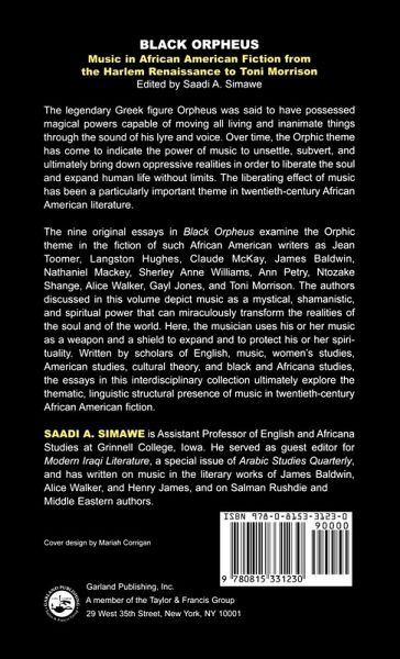 The legendary Greek figure Orpheus was said to have possessed magical powers capable of moving all living and inanimate things through the sound of his lyre and voice. Over time, the Orphic theme has come to indicate the power of music to unsettle, subvert, and ultimately bring down oppressive realities in order to liberate the soul and expand human life without limits. The liberating effect of music has been a particularly important theme in twentieth-century African American literature. The nine original essays in Black Orpheus examines the Orphic theme in the fiction of such African American writers as Jean Toomer, Langston Hughes, Claude McKay, James Baldwin, Nathaniel Mackey, Sherley Anne Williams, Ann Petry, Ntozake Shange, Alice Walker, Gayl Jones, and Toni Morrison. The authors discussed in this volume depict music as a mystical, shamanistic, and spiritual power that can miraculously transform the realities of the soul and of the world. Here, the musician uses his or her music as a weapon to shield and protect his or her spirituality. Written by scholars of English, music, women's studies, American studies, cultural theory, and black and Africana studies, the essays in this interdisciplinary collection ultimately explore the thematic, linguistic structural presence of music in twentieth-century African American fiction.
