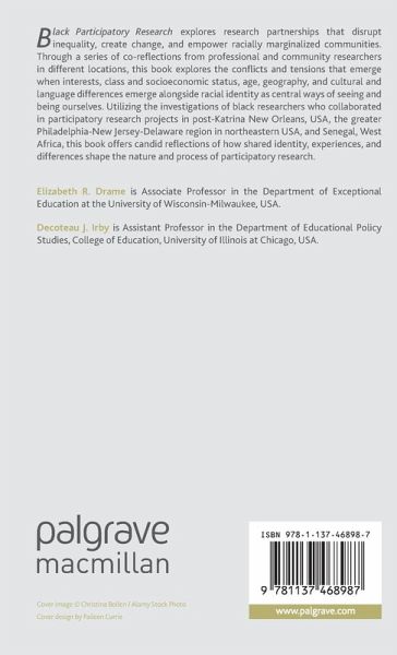 Black Participatory Research explores research partnerships that disrupt inequality, create change, and empower racially marginalized communities. Through presenting a series of co-reflections from professional and community researchers in different locations, this book explores the conflicts and tensions that emerge when professional interests, class and socio-economic statuses, age, geography, and cultural and language differences emerge alongside racial identity as central ways of seeing and being ourselves. Through the investigations of black researchers who collaborated in participatory research projects in post-Katrina New Orleans, USA the greater Philadelphia-New Jersey-Delaware region in the northeastern USA, and Senegal, West Africa, this book offers candid reflections of how shared identity, experiences, and differences shape the nature and process of participatory research.