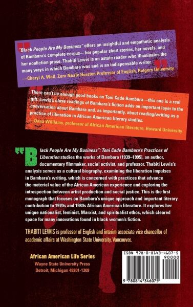 "Black People Are My Business": Toni Cade Bambara's Practices of Liberation studies the works of Bambara (1939-1995), an author, documentary filmmaker, social activist, and professor. Thabiti Lewis's analysis serves as a cultural biography, examining the liberation impulses in Bambara's writing, which is concerned with practices that advance the material value of the African American experience and exploring the introspection between artist production and social justice. This is the first monograph that focuses on Bambara's unique approach and important literary contribution to 1970s and 1980s African American literature. It explores her unique nationalist, feminist, Marxist, and spiritualist ethos, which cleared space for many innovations found in black women's fiction. Divided into five chapters, Lewis's study relies on Bambara's voice (from interviews and essays) to craft a "spiritual wholeness aesthetic"-a set of principles that comes out of her practices of liberation and entail family, faith, feeling, and freedom-that reveals her ability to interweave ethnic identity, politics, and community engagement and responsibility with the impetus of balancing black male and female identity influences and interactions within and outside the community. One key feature of Bambara's work is the concentration on women as cultural workers whereby her notion of spiritual wholeness upends what has become a scholarly distinction between feminism and black nationalism. Bambara's fiction situates her as a pivotal voice within the Black Arts Movement and contemporary African American literature. Bambara is an understudied and important artistic voice whose aversion to playing it safe both personified and challenged the boundaries of black nationalism and feminism. "Black People Are My Business" is a wonderful addition to any reader's list, especially those interested in African American literary and cultural studies.