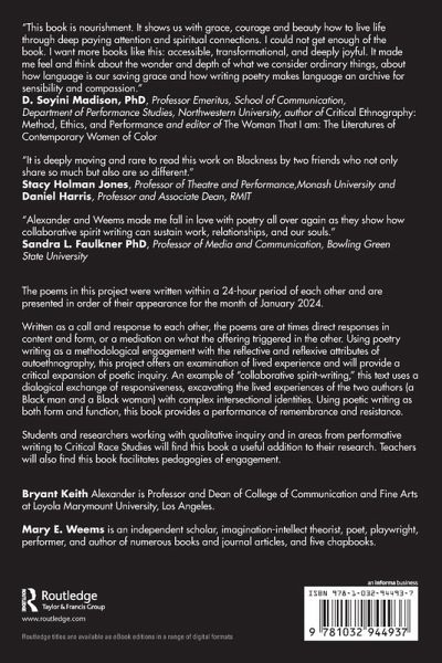 Bryant Keith Alexander is Professor and Dean of College of Communication and Fine Arts at Loyola Marymount University, Los Angeles. Mary E. Weems is an independent scholar, imagination¿intellect theorist, poet, playwright, performer, and author of numerous books and journal articles, and five chapbooks.