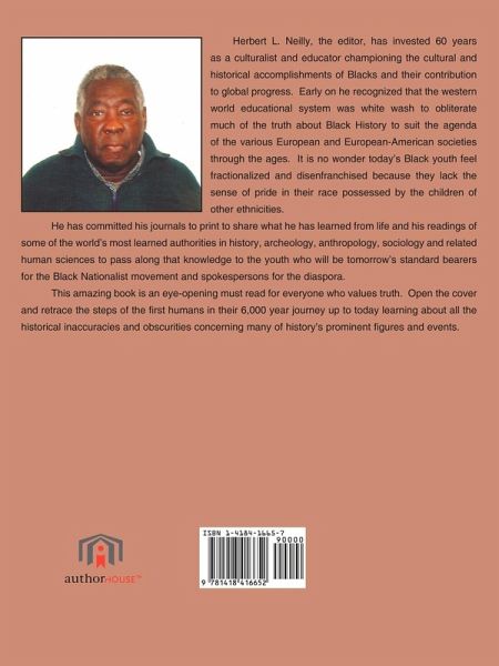 This comprehensive history of the Black experience is truly an eye-opener. Herbert L. Neilly, as editor, has gleaned significant details from major events in the lives of Blacks as a whole, from the dawn of history through the last six millennia up until the present, concerning notable Black individuals, nations, politics, cultures, customs, morés, religions, languages, bias, oppression, politics, movements and philosophies, as well as related worldwide events. Gathered from the writings of numerous Black historians, social commentarians and anthropologists it commits facts, rather than biased opinion, about the journey of the American Black's ancestors to paper, validating their collective family tree as one of intelligence, valor and accomplishment. For the enthralled and curious reader, Neilly has given copious credit and reference honoring the original authors of the tracts from which he has compiled this paean so they may access these books in their entirety to rejoice in every single detail. These books are equally useful to individuals curious about history or teachers eager to place knowledge and power in the hands of their students.
