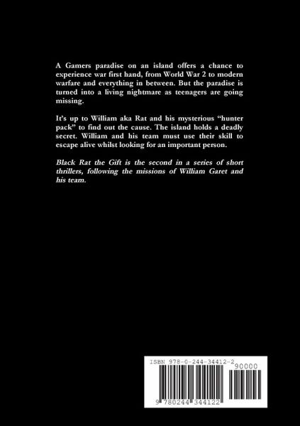 A Gamers paradise on an island offers a chance to experience war first hand, from World War 2 to modern warfare and everything in between. But the paradise is turned into a living nightmare as teenagers are going missing. It's up to William aka Rat and his mysterious "hunter pack" to find out the cause. The island holds a deadly secret. William and his team must use their skill to escape alive whilst looking for an important person. Black Rat the Gift is the second in a series of short thrillers, following the missions of William Garet and his team.