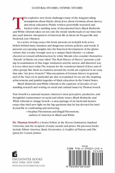 Sowell seeks to dispel the stereotypes associated with "black rednecks," claiming that their attempts to escape these typecasts are hampered by white liberals. He ventures further, questioning other ethnic stereotypes and the present practice of slavery.