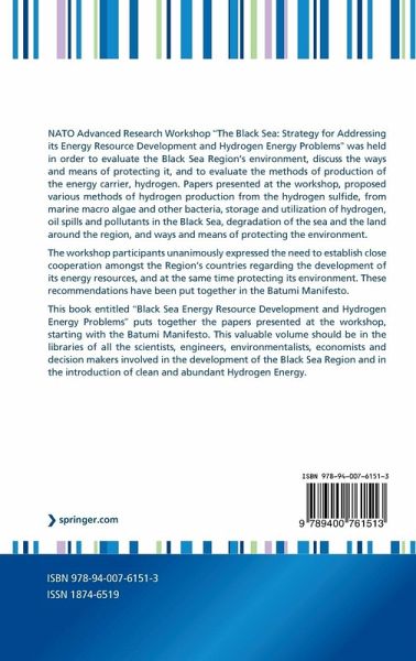 NATO Advanced Research Workshop "The Black Sea: Strategy for Addressing its Energy Resource Development and Hydrogen Energy Problems" was held in order to evaluate the Black Sea Region's environment, discuss the ways and means of protecting it, and to evaluate the methods of production of the energy carrier, hydrogen. Papers presented at the workshop, proposed various methods of hydrogen production from the hydrogen sulfide, from marine macro algae and other bacteria, storage and utilization of hydrogen, oil spills and pollutants in the Black Sea, degradation of the sea and the land around the…mehr