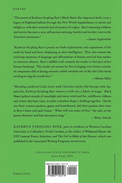 Black Shawl emanates from Kathryn Stripling Byer's fascination with female ballad singers in southern Appalachia, whose voices haunt the mountains still, and from the image of a black net or shawl being dragged over the ground, plumbing the depths, collecting bits and fragments of a woman's life. The singers and storytellers of this collection are struggling to answer the query of the book's epigraph: "What will you make of this?"
