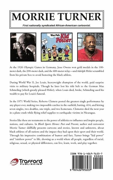 At the 1936 Olympic Games in Germany, Jesse Owens won gold medals in the 100-meter dash, the 200-meter dash, and the 400-meter relay-and Adolph Hitler scrambled from his private box to avoid honoring the black athlete. During World War II, Joe Louis, heavyweight champion of the world, paid surprise visits to military hospitals. Though he later lost his title belt to the German Max Schmeling (which greatly pleased Hitler), when Louis died, broke, Schmeling used his wealth to pay for Louis's funeral. In the 1971 World Series, Roberto Clemete posted the greatest single performance by any player ever, making two impossible catches in the outfield, batting .414, and hitting seven singles, two doubles, one triple, and two homeruns. Clemente died the next year in a plane crash while flying relief supplies to earthquake victims in Nicaragua. Stories like these are testaments to the power of athletics to influence and inspire people, nations, and cultures. In Black Sports Heroes: Past and Present, author and cartoonist Morrie Turner skillfully presents cartoons and stories, known and unknown, about black athletes of all nations and the impact they had upon their sport and their world. Through his impressive combination of humor and fact, Turner brings "kid power" and "rainbow power" to life, showing us a world where all people, regardless of racial, religious, sexual, or physical differences, can live, learn, work, and play together.