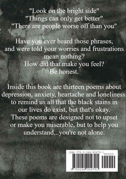 Were you ever told your worries, and frustrations meant nothing in the grand scheme of things? If so, you may relate to these thirteen poems of anguish. Read, and understand you're not alone.