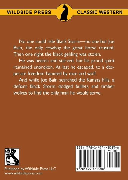 No one could ride Black Storm--no one but Joe Bain, the only cowboy the great horse trusted, Then one night the black gelding was stolen. He was beaten and starved, but his proud spirit remained unbroken. At last he escaped, to a desperate freedom haunted by man and wolf. And while Joe Bain searched the Kansas hills, a defiant Black Storm dodged bullets and timber wolves to find the only man he would serve,