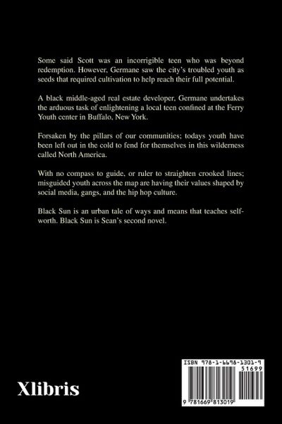 Some said Scott was an incorrigible teen who was beyond redemption. However, Germane saw the city's troubled youth as seeds that required cultivation to help reach their full potential. A black middle-aged real estate developer, Germane undertakes the arduous task of enlightening a local teen confined at the Ferry Youth center in Buffalo, New York. Forsaken by the pillars of our communities; todays youth have been left out in the cold to fend for themselves in this wilderness called North America. With no compass to guide, or ruler to straighten crooked lines; misguided youth across the map are having their values shaped by social media, gangs, and the hip hop culture. Black Sun is an urban tale of ways and means that teaches self-worth. Black Sun is Sean's second novel.