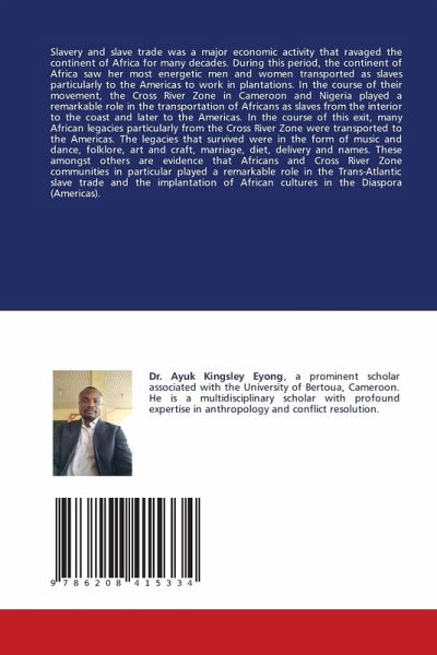 Slavery and slave trade was a major economic activity that ravaged the continent of Africa for many decades. During this period, the continent of Africa saw her most energetic men and women transported as slaves particularly to the Americas to work in plantations. In the course of their movement, the Cross River Zone in Cameroon and Nigeria played a remarkable role in the transportation of Africans as slaves from the interior to the coast and later to the Americas. In the course of this exit, many African legacies particularly from the Cross River Zone were transported to the Americas. The legacies that survived were in the form of music and dance, folklore, art and craft, marriage, diet, delivery and names. These amongst others are evidence that Africans and Cross River Zone communities in particular played a remarkable role in the Trans-Atlantic slave trade and the implantation of African cultures in the Diaspora (Americas).