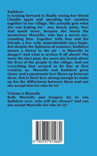 Kathleen is looking forward to finally seeing her friend Claudia again and spending her vacation together in her village. She actually gets what she was hoping for - sea, beach, party, fun! And much more, because she meets the mysterious Marcello, who has a secret surrounding him. Together with him and his friends, a few wild, unpredictable days begin. But despite the lightness of summer, Kathleen senses a threat in the air - is Marcello in danger? And what is section B all about? The more the days pass, the more she learns about the lives of the people in the village. And not everything that seemed to be fine at first remains so. Marcello and Kathleen grow closer and a passionate love flares up between them. But is their love strong enough to make up for the differences between them and can she accept him for who he is? Volume 2 Marcello: Both Marcello and Gregory try to win Kathleen over, who will she choose? And can she accept Marcello for who he is?