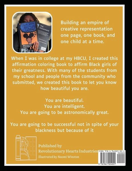 "Black Women are the Future" is a coloring book that was explicitly designed in every aspect to uplift young black and brown girls as well as women. This coloring book features some of the most prominent and groundbreaking women in U.S. history as well as a large number of examples from everyday life that hope to exemplify the beauty and grace that are black women. The name Black Women are the Future is to ensure young girls that they know that whatever the future holds for the world, they will be the ones to make it happen. The faces in the coloring book are either blank or exemplify features that we, as black women, are trained to hate about ourselves (ex. nose, lips, eyebrows). I want young women to visualize themselves as these women and to be able to color in books with women that look like them or their mothers. It is essential that children can see themselves in everything around them, whether that be movies, TV shows, books, plays, or even something as simple as a coloring book. A coloring book made for black girls by a black woman. This is a republished version of the original book done in 2019. The Creative Representation Empire (TCRE) is a series of creative tools and coloring books used to establish creative representation and immersive educational resources for Black and Brown kids. We work to create mirrors of representation for underrepresented communities and portals of understanding, education, and empathy for those not a part of those communities. We are dedicated to doing the work it takes to create a more inclusive and welcoming world one page, one book, and one child at a time.