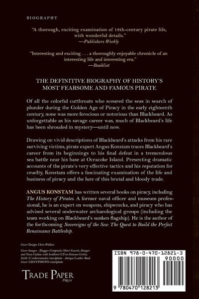A thorough, exciting examination of 18th-century pirate life,with wonderful details. --Publishers Weekly ""Interesting and exciting . . . a thoroughly enjoyable chronicle of an interesting life and interesting era."" --Booklist The definitive biography of history'smost fearsome and famous pirate Of all the colorful cutthroats who scoured the seas in search of plunder during the Golden Age of Piracy in the early eighteenth century, none was more ferocious or notorious than Blackbeard. As unforgettable as his savage career was, much of Blackbeard's life has been shrouded in mystery--until now. Drawing on vivid descriptions of Blackbeard's attacks from his rare surviving victims, pirate expert Angus Konstam traces Blackbeard's career from its beginnings to his final defeat in a tremendous sea battle near his base at Ocracoke Island. Presenting dramatic accounts of the pirate's very effective tactics and his reputation for cruelty, Konstam offers a fascinating examination of the life and business of piracy and the lure of this brutal and bloody trade.