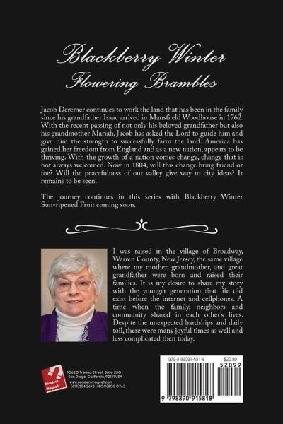 Jacob Deremer continues to work the land that has been in the family since his grandfather Isaac arrived in Mansfi eld Woodhouse in 1762. With the recent passing of not only his beloved grandfather but also his grandmother Mariah, Jacob has asked the Lord to guide him and give him the strength to successfully farm the land. America has gained her freedom from England and as a new nation, appears to be thriving. With the growth of a nation comes change, change that is not always welcomed. Now in 1804, will this change bring friend or foe? Will the peacefulness of our valley give way to city ideas? It remains to be seen. The journey continues in this series with Blackberry Winter Sun-ripened Fruit coming soon.¿