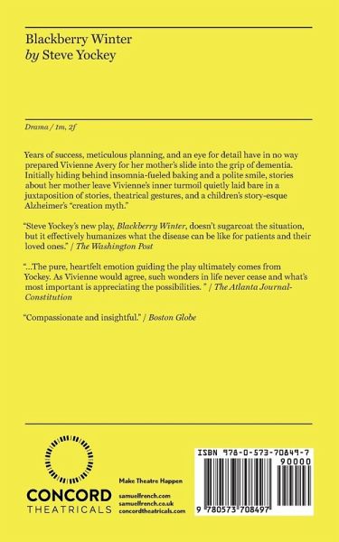 Years of success, meticulous planning, and an eye for detail have in no way prepared Vivienne Avery for her mother's slide into the grip of dementia. Initially hiding behind insomnia-fueled baking and a polite smile, stories about her mother leave Vivienne's inner turmoil quietly laid bare in a juxtaposition of stories, theatrical gestures, and a children's story-esque Alzheimer's "creation myth."