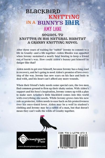 Sequel to Knitter in His Natural HabitatA Granby Knitting Novel After three years of waiting for "rabbit" Jeremy to commit to a life in Granby-and a life together-Aiden Rhodes was appalled when Jeremy sustained a nearly fatal beating to keep a friend out of harm's way. How could Aiden's bunny put himself in danger like that? Aiden needs to get over himself, because Jeremy has a long road to recovery, and he's going to need Aiden's promise of love every step of the way. Jeremy has new scars on his face and body to deal with, and his heart can't afford any more wounds. When their friend's baby needs some special care, the two men find common ground to firm up their shaky union. With Aiden's support and his boss's inspiration, Jeremy comes up with a plan to make sure Ariadne's little blackbird comes into this world with everything she needs. While Jeremy grows into his new role as protector, Aiden needs to ease back on his protectiveness over his once-timid lover. Aiden may be a wolf in student's clothing and Jeremy may be a rabbit of a man, but that doesn't mean they can't walk the wilds of Granby together.