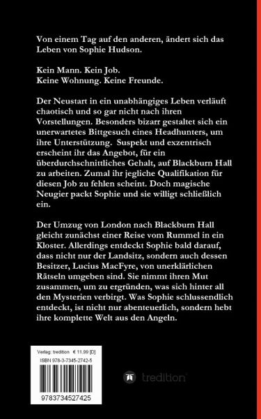 Der Neustart in ein unabhängiges Leben verläuft chaotisch und so gar nicht nach ihren Vorstellungen. Besonders bizarr gestaltet sich ein unerwartetes Bittgesuch eines Headhunters, um ihre Unterstützung. Suspekt und exzentrisch erscheint ihr das Angebot, für ein überdurchschnittliches Gehalt, auf Blackburn Hall zu arbeiten. Zumal ihr jegliche Qualifikation für diesen Job zu fehlen scheint. Doch magische Neugier packt Sophie und sie willigt schließlich ein.