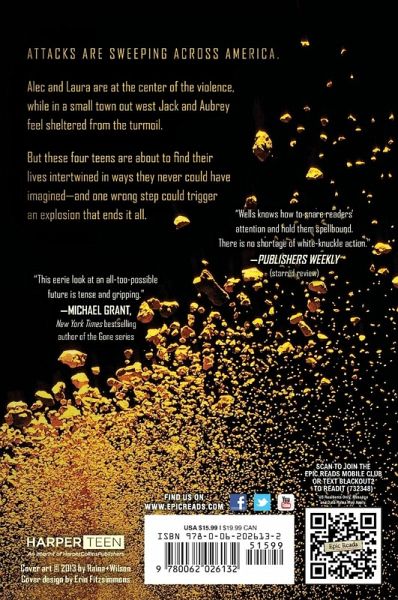 Homeland meets Marie Lu's Legend in Blackout, which #1 New York Times bestselling author Ally Condie called "a thrilling combination of Wells's trademark twists and terror. Fantastic!" Laura and Alec are highly trained teenage terrorists. Jack and Aubrey are small-town high school students. There was no reason for their paths ever to cross. But now a mysterious virus is spreading throughout America, infecting teenagers with impossible superpowers--and all teens are being rounded up, dragged to government testing facilities, and drafted into the army to fight terrorism. Suddenly, Jack, Laura, Aubrey, and Alec find their lives intertwined in a complex web of deception, loyalty, and catastrophic danger--where one wrong choice could trigger an explosion that ends it all.