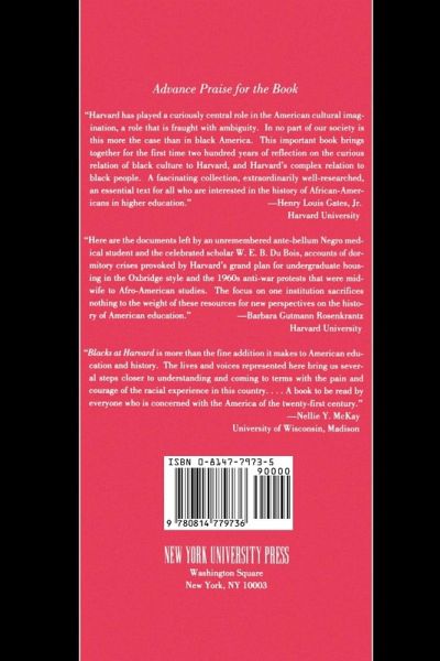 The history of blacks at Harvard mirrors, for better or for worse, the history of blacks in the United States. Harvard, too, has been indelibly scarred by slavery, exclusion, segregation, and other forms of racist oppression. At the same time, the nation's oldest university has also, at various times, stimulated, supported, or allowed itself to be influenced by the various reform movements that have dramatically changed the nature of race relations across the nation. The story of blacks at Harvard is thus inspiring but painful, instructive but ambiguous?a paradoxical episode in the most vexing controversy of American life: the "race question." The first and only book on its subject, Blacks at Harvard is distinguished by the rich variety of its sources. Included in this documentary history are scholarly overviews, poems, short stories, speeches, well-known memoirs by the famous, previously unpublished memoirs by the lesser known, newspaper accounts, letters, official papers of the university, and transcripts of debates. Among Harvard's black alumni and alumnae are such illustrious figures as W.E.B. Du Bois, Monroe Trotter, and Alain Locke; Countee Cullen and Sterling Brown both received graduate degrees. The editors have collected here writings as diverse as those of Booker T. Washington, William Hastie, Malcolm X, and Muriel Snowden to convey the complex ways in which Harvard has affected the thinking of African Americans and the ways, in turn, in which African Americans have influenced the traditions of Harvard and Radcliffe. Notable among the contributors are significant figures in African American letters: Phyllis Wheatley, William Melvin Kelley, Marita Bonner, James Alan McPherson and Andrea Lee. Equally prominent in the book are some of the nation's leading historians: Carter Woodson, Rayford Logan, John Hope Franklin, and Nathan I. Huggins. A vital sourcebook, Blacks at Harvard is certain to nourish scholarly inquiry into the social and intellectual history of African Americans at elite national institutions and serves as a telling metaphor of this nation's past.
