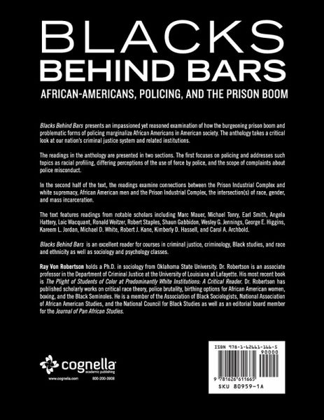 Blacks Behind Bars presents an impassioned yet reasoned examination of how the burgeoning prison boom and problematic forms of policing marginalize African-Americans in American society. The anthology takes a critical look at our nation’s criminal justice system and related institutions. The readings in the anthology are presented in two sections. The first focuses on policing and addresses such topics as racial profiling, differing perceptions of the use of force by police, and the scope of complaints about police misconduct. In the second half of the text, the readings examine connections between the Prison Industrial Complex and white supremacy, African-American men and the Prison Industrial Complex, the intersection(s) of race, gender, and mass incarceration. The text features readings from notable scholars including Marc Mauer, Michael Tonry, Earl Smith, Angela Hattery, Loic Wacquant, Ronald Weitzer, Robert Staples, Shaun Gabbidon, Wesley G. Jennings, George E. Higgins, Kareem L. Jordan, Michael D. White, Robert J. Kane, Kimberly D. Hassell, and Carol A. Archbold. Blacks Behind Bars is an excellent reader for courses in criminal justice, criminology, Black studies, and race and ethnicity as well as sociology and psychology classes.