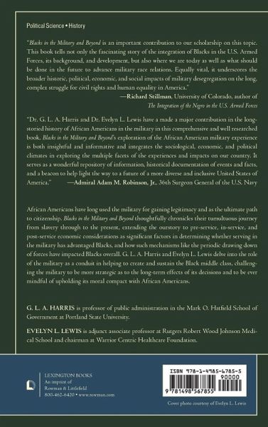 African Americans have long used the military for gaining legitimacy and as the ultimate path to citizenship. Blacks in the Military and Beyond thoughtfully chronicles their tumultuous journey from slavery through the present, extending the ourstory to pre-service, in service and post-service economic considerations as significant factors in determining whether or not serving in the military has advantaged Blacks, and how such mechanisms like the periodic drawing down of forces have impacted Blacks overall. G.L.A. Harris and Evelyn L. Lewis delve into the role of the military as a conduit in helping to create and sustain the Black middle class, challenging the military to be more strategic as to the long term effects of its decisions to be ever mindful of upholding its moral compact with African Americans.