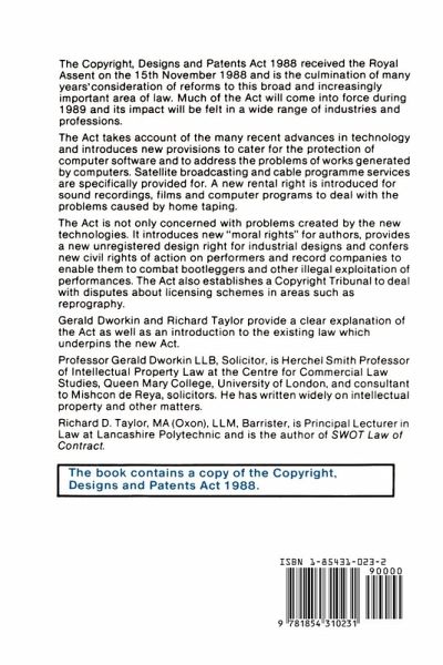 Including a copy of the act, the culmination of 15 years of consideration of reforms to the law of copyright, this book provides a legal framework for the advances in technology in recent years and aims to explain the detail of the act as well as describe the existing law which underpins it.