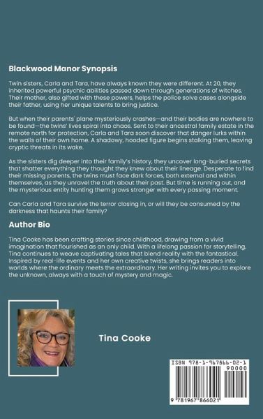 Welcome to Blackwood Manor, where mystery lingers in every shadow, and the echoes of the past weave into the present. When twin sisters Tara and Carla Ward inherit their family's ancestral estate, they uncover a web of secrets that threaten to unravel everything they thought they knew. Haunted by cryptic visions, eerie encounters, and an enigmatic letter from their late grandmother, the sisters must delve into their family's dark history to protect themselves from a lurking danger. As Tara and Carla navigate supernatural occurrences and sinister threats, they confront a chilling truth: their unique psychic gifts may be the key to unlocking long-buried secrets-and to their survival. With each revelation, the line between ally and enemy blurs in this spellbinding tale of intrigue, family legacy, and resilience. Perfect for fans of gothic suspense, paranormal mysteries, and stories that balance heart-pounding action with deep emotional stakes, Blackwood Manor is an unputdownable journey into the unknown.