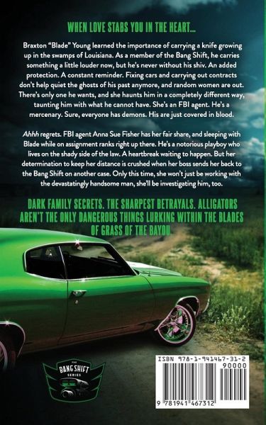 When love stabs you in the heart... Braxton "Blade" Young learned the importance of carrying a knife growing up in the swamps of Louisiana. As a member of the Bang Shift, he carries something a little louder now, but he's never without his shiv. An added protection. A constant reminder. Fixing cars and carrying out contracts don't help quiet the ghosts of his past anymore, and random women are out. There's only one he wants, and she haunts him in a completely different way, taunting him with what he cannot have. She's an FBI agent. He's a mercenary. Sure, everyone has demons. His are just covered in blood. Ahhh regrets. FBI agent Anna Sue Fisher has her fair share, and sleeping with Blade while on assignment ranks right up there. He's a notorious playboy who lives on the shady side of the law. A heartbreak waiting to happen. But her determination to keep her distance is crushed when her boss sends her back to the Bang Shift on another case. Only this time, she won't just be working with the devastatingly handsome man, she'll be investigating him, too. Dark family secrets. The sharpest betrayals. Alligators aren't the only dangerous things lurking within the blades of grass of the bayou.