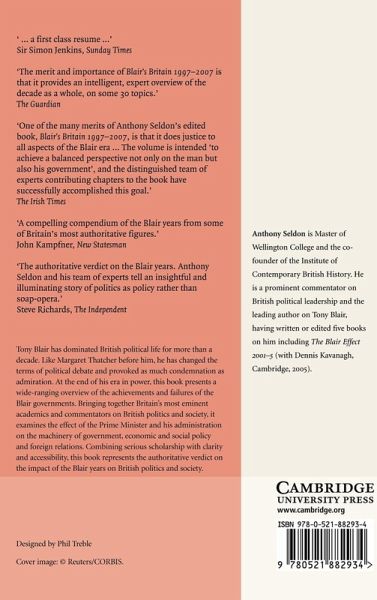 Commentary (Philip Stephens)Part I. Politics and Government: 1. The Blair premiership Dennis Kavanagh; 2. Parliament Philip Cowley; 3. Elections and public opinion John Curtice; 4. Local government Tony Travers; 5. Central government Paul Fawcett and R. A. W. Rhodes; 6. The constitution Philip Norton; 7. Media management Raymond Kuhn; 8. Tony Blair as Labour Party leader Richard Heffernan; 9. Social democracy Vernon Bogdanor; Part II. Economics and Finance: 10. The Treasury and economic policy Peter Sinclair; 11. New Labour, new capitalism Robert Taylor; 12. Transport Stephen Glaister; 13. Industrial policy Nicholas Crafts; Part III. Policy Studies: 14. Law and the judiciary Michael Beloff; 15. Crime and penal policy Tim Newburn and Robert Reiner; 16. Immigration Sarah Spencer; 17. Schools Alan Smithers; 18. The health and welfare legacy Nick Bosanquet; 19. Equality and social justice Kitty Stewart; 20. Culture and attitudes Ben Page; 21. Higher education John O'Leary; Part IV. Wider Relations: 22. The national question Iain McLean; 23. Ireland: the Peace Process Frank Millar; 24. Europe Ian Bache and Neill Nugent; 25. Development Richard Manning; 26. Climate change Kunal Khatri; 27. Foreign policy Michael Clarke; 28. Defence Lawrence Freedman; Commentary Timothy Garton Ash; Commentary Philip Stephens; Conclusion: the net Blair effect, 1994-2007 Anthony Seldon.