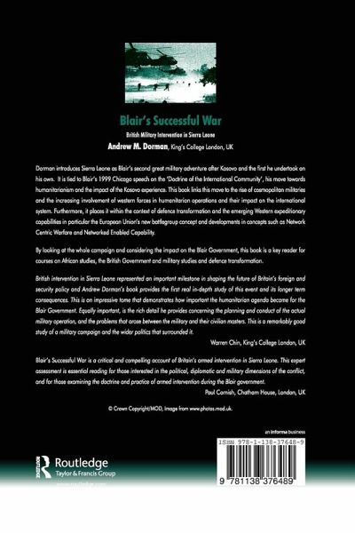 Andrew Dorman introduces Sierra Leone as Blair's second great military adventure after Kosovo and the first he undertook on his own. It is tied to Blair's 1999 Chicago speech on the 'Doctrine of the International Community', his move towards humanitarianism and the impact of the Kosovo experience. The book links this move with the rise of cosmopolitan militaries and the increasing involvement of Western forces in humanitarian operations and their impact on the international system. Furthermore, it places it within the context of defence transformation and the emerging Western expeditionary capabilities, in particular the European Union's new battle group concept and developments in concepts such as Network Centric Warfare and Networked Enabled Capability. Examining the whole campaign and considering the impact on the Blair Government, this book will prove to be a key reader on the topic.