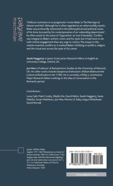 Famously, Blake believed that 'without contraries' there could be no 'progression'. Conflict was integral to his artistic vision, and his style, but it had more to do with critical engagement than any urge to victory. The essays in this volume look at conflict as it marked Blake's thinking on politics, religion and the visual arts.