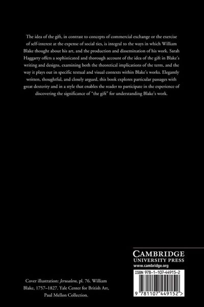 The idea of the gift, in contrast to concepts of commercial exchange or the exercise of self-interest at the expense of social ties, is integral to the ways in which William Blake thought about his art, and the production and dissemination of his work. Sarah Haggarty offers a sophisticated and thorough account of the idea of the gift in Blake's writing and designs, examining both the theoretical implications of the term, and the way it plays out in specific textual and visual contexts within Blake's works. Elegantly written, thoughtful and closely argued, this book explores particular passages with great dexterity and in a style that enables the reader to participate in the experience of discovering the significance of 'the gift' for understanding Blake's work.