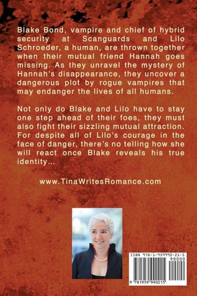 Blake Bond, vampire and chief of hybrid security at Scanguards and Lilo Schroeder, a human, are thrown together when their mutual friend Hannah goes missing. As they unravel the mystery of Hannah's disappearance, they uncover a dangerous plot by rogue vampires that may endanger the lives of all humans. Not only do Blake and Lilo have to stay one step ahead of their foes, they must also fight their sizzling mutual attraction. For despite all of Lilo's courage in the face of danger, there's no telling how she will react once Blake reveals his true identity... ¿¿ ¿¿ ¿¿ ¿¿ ¿¿ Lara Adrian, New York Times Bestselling Author of the Midnight Breed series: "I'm addicted to Tina Folsom's books! The Scanguards® series is one of the hottest things to happen to vampire romance. If you love scorching, fast-paced reads, don't miss this thrilling series!" ABOUT THE SERIES The Scanguards Vampires series is full of fast-paced action, scorching love scenes, witty dialogue, and strong heroes and heroines. Vampire Samson Woodford lives in San Francisco and owns a security/bodyguard company, Scanguards, which employs both vampires and humans. And eventually some witches. Throw in a few immortal guardians and demons later in the series, and you'll get the drift! Each book can be read as a standalone and always centers around a new couple finding love, but the series is more enjoyable when read in order. Scanguards Vampires: Book 1: Samson's Lovely Mortal Book 2: Amaury's Hellion Book 3: Gabriel's Mate Book 4: Yvette's Haven Book 5: Zane's Redemption Book 6: Quinn's Undying Rose Book 7: Oliver's Hunger Book 8: Thomas's Choice Book 8 1/2: Silent Bite Book 9: Cain's Identity Book 10: Luther's Return Novella: Mortal Wish Book 11: Blake's Pursuit Novella 11 1/2: Fateful Reunion Book 12: John's Yearning Book 13: Ryder's Storm (Scanguards Hybrids #1) Book 14: Damian's Conquest (Scanguards Hybrids #2) Book 15: Grayson's Challenge (Scanguards Hybrids #3) Thriller (T.R. Folsom) Eyewitness Stealth Guardians Lover Uncloaked (#1) Master Unchained (#2) Warrior Unraveled (#3) Guardian Undone (#4) Immortal Unveiled (#5) Protector Unmatched (#6) Demon Unleashed (#7) Code Name Stargate Ace on the Run (#1) Fox in plain Sight (#2) Yankee in the Wind (#3) Tiger on the Prowl (#4) Venice Vampyr Venice Vampyr (#1) Venice Vampyr (#2): Final Affair Venice Vampyr (#3): Sinful Treasure Venice Vampyr (#4): Sensual Danger Out of Olympus Book 1: A Touch of Greek Book 2: A Scent of Greek Book 3: A Taste of Greek Book 4: A Hush of Greek The Scanguards Vampires series has it all: love at first sight, enemies to lovers, meet cute, instalove, alpha hero, fated mates, bodyguard, band of brothers, damsel in distress, woman in peril, beauty and the beast, hidden identity, soul mates, first love, virgins, tortured hero, age gap, second chance love, grieving lover, return from the dead, secret baby, playboy, kidnappings, friends to lovers, coming out, secret admirer, last to know, unrequited love, amnesia, royalty, forbidden love.