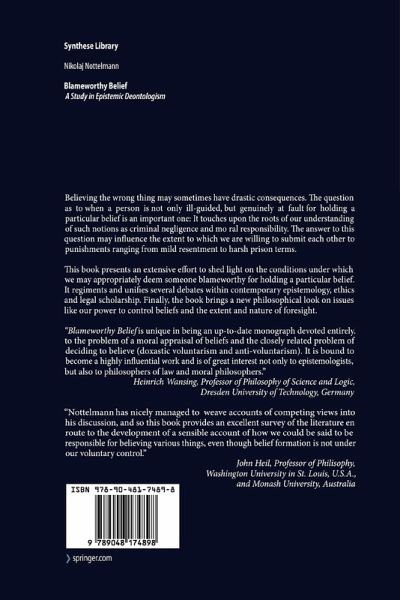 This book presents an extensive effort to shed light on the conditions under which we may appropriately deem someone blameworthy for holding a particular belief. It regiments and unifies several debates within contemporary epistemology, ethics and legal scholarship. Finally, the book brings a new philosophical look on issues like our power to control beliefs and the extent and nature of foresight.