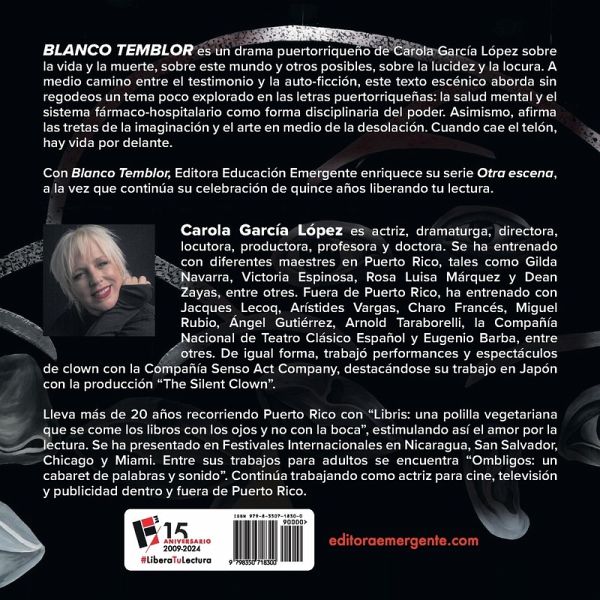 Carola García López es actriz, dramaturga, directora, locutora, escritora, productora, profesora y doctora. Se ha entrenado con diferentes maestros en Puerto Rico tales como Gilda Navarra, Victoria Espinosa, Rosa Luisa Márquez y Dean Zayas, entre otres. Fuera de Puerto Rico ha entrenado con Jacques Lecoq, Arístides Vargas, Charo Francés, Miguel Rubio, Ángel Gutiérrez, Arnold Taraborelli, la Compañía Nacional de Teatro Clásico Español y Eugenio Barba, entre otres. De igual forma trabajó performances y espectáculos de clown con la Compañía Senso Act Company, destacándose su trabajo en Japón con la producción "The Silent Clown".Lleva más de 20 años recorriendo Puerto Rico con "Libris una polilla vegetariana que se come los libros con los ojos y no con la boca" y de esta forma estimula el amor por la lectura. Se ha presentado en Festivales Internacionales en Nicaragua, San Salvador y Miami. Entre sus trabajos para adultos se encuentra "Ombligos un cabaret de palabras y sonido". Continúa trabajando como actriz para cine, televisión y publicidad dentro y fuera de Puerto Rico.