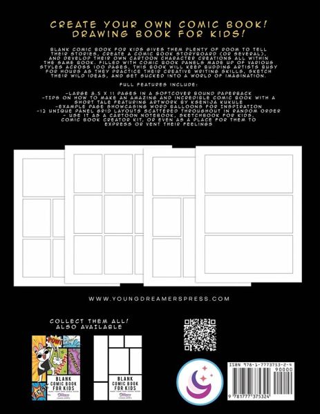 Create your own comic book! Make your own comic! Comic Sketch Book! Tired of seeing your little one or grandkid glued to a screen? Wish you could get them more engaged in the arts? Now's your chance with this great activity book for kids that allows them to write their own stories and draw their own comics! Blank Comic Book for Kids gives them plenty of room to tell their stories, create a comic book storyboard (or several), and develop their own cartoon character creations all within the same book. Filled with comic book panels made up of various styles across 100 pages, this book will keep budding artists busy for hours as they practice their creative writing skills, sketch their wild ideas, and get sucked into a world of imagination. Full features include: LARGE 8.5 x 11 pages in a softcover bound paperback with a glossy cover TIPS on how to make an amazing and incredible comic book with a short tale featuring artwork by Ksenija Kukule EXAMPLE page showcasing word balloons and how to utilize special effects 12 UNIQUE panel grid layouts scattered throughout in random order MULTIPLE USES - use it as a cartoon notebook, sketchbook for kids, comic book creator kit, or even as a place for them to express or vent their feelings It's the perfect gift for the holidays (use as a stocking stuffer/stocking filler!), birthday present, Easter basket gift, or even for the classroom. Order your copy today!