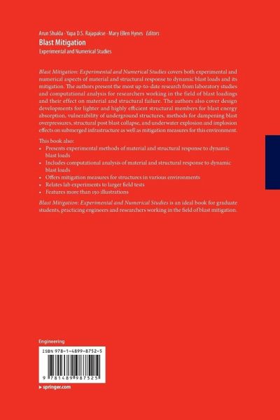 Blast Mitigation: Experimental and Numerical Studies covers both experimental and numerical aspects of material and structural response to dynamic blast loads and its mitigation. The authors present the most up-to-date understanding from laboratory studies and computational analysis for researchers working in the field of blast loadings and their effect on material and structural failure, develop designs for lighter and highly efficient structural members for blast energy absorption, discuss vulnerability of underground structures, present methods for dampening blast overpressures, discuss structural post blast collapse and give attention to underwater explosion and implosion effects on submerged infrastructure and mitigation measures for this environment.