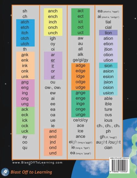 Blast Off to Reading! is designed for children, ages 7-13, who are reading below grade level. This is for children who have dyslexia, speech delays, auditory processing disorder (APD), and other learning difficulties. This multisensory, Orton-Gillingham based program will systematically teach your child to read starting from the most basic units of sounds to multi-syllable, complex words in just 50 lessons. Each lesson includes a new sound or rule, followed by several exercises, which review concepts taught in the lesson as well as those taught previously. This provides the perfect blend of reading and writing with review. Your student will become aware of sounds and how they are put together to form words. Why Use Blast Off to ReadingThe program is highly structured, gradually building up on what was taught. This program, while covering topics taught to younger students, is made for the maturity level of this age group (7-13). The lessons are easy to implement, little to no lesson planning is needed. This book is colorful, with large text and a simple layout that is created to be visually appealing to children. There is an answer key included, so if you aren't sure, you can always check. Spelling is also addressed. The back of the book includes the complete phonics reference chart (all of the sounds taught) for a quick review or reference. There are teaching tools and online activities to augment this program available at the Blast Off to Learning website. Who Can Use This ProgramParents, family members, or anyone who can work with the child on a consistent basis. Tutors - This program is easy to implement, just begin your session where you left off. Teachers - This program can be used with small groups; however, it's recommended to use the lesson slides to present the lessons.