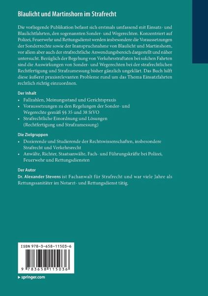 Die vorliegende Publikation befasst sich erstmals umfassend mit Einsatz- und Blaulichtfahrten, den sogenannten Sonder- und Wegerechten. Konzentriert auf Polizei, Feuerwehr und Rettungsdienst werden insbesondere die Voraussetzungen der Sonderrechte sowie der Inanspruchnahme von Blaulicht und Martinshorn, vor allem aber auch der strafrechtliche Anwendungsbereich dargestellt und näher untersucht. Bezüglich der Begehung von Verkehrsstraftaten bei solchen Fahrten sind die Auswirkungen von Sonder- und Wegerechten bei der strafrechtlichen Rechtfertigung und Strafzumessung bisher gänzlich ungeklärt. Das Buch hilft diese äußerst praxisrelevanten Probleme rund um das Thema Einsatzfahrten rechtlich richtig einzuordnen.