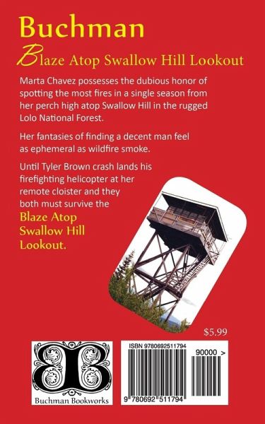 -a Firehawks romance story- Marta Chavez possesses the dubious honor of spotting the most fires in a single season from her perch high atop Swallow Hill in the rugged Lolo National Forest. Her fantasies of finding a decent man feel as ephemeral as wildfire smoke. Until Tyler Brown crash lands his firefighting helicopter at her remote cloister and they both must survive the Blaze Atop Swallow Hill Lookout.