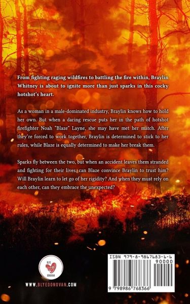 From fighting raging wildfires to battling the fire within, Braylin Whitney is about to ignite more than just sparks in this cocky hotshot's heart. As a woman in a male-dominated industry, Braylin knows how to hold her own. But when a daring rescue puts her in the path of hotshot firefighter Noah "Blaze" Layne, she may have met her match. After they're forced to work together, Braylin is determined to stick to her rules, while Blaze is equally determined to make her break them. Sparks fly between the two, but when an accident leaves them stranded and fighting for their lives, can Blaze convince Braylin to trust him? Will Braylin learn to let go of her rigidity? And when they must rely on each other, can they embrace the unexpected?