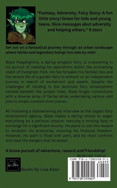 Set out on a fantastical journey through an urban landscape where fairies and legendary beings live side by side! Blaze Peppergrove, a daring wingless fairy, is unwavering in his pursuit of realizing his aspirations within the enchanting realm of Evergreen Park. He has forsaken his familial ties and the serene life of a garden fairy to embark on an independent journey in search of excitement and wealth. Despite the challenges of residing in the destitute fairy encampment nestled beneath the juniper trees, Blaze forges connections with a diverse array of fairies while undertaking various odd jobs to amass coveted silver pieces. Following a disheartening job interview at the largest fairy employment agency, Blaze makes a daring choice to wager everything on a perilous mission: rescuing a missing fairy in exchange for a significant bounty. He plans to use this reward to establish his enterprise, ensuring his financial freedom. However, his path is filled with peril, and he must confront and clear the dangers that lie ahead.