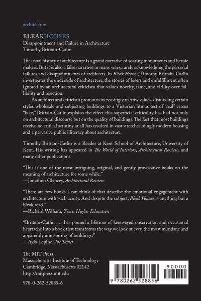 The usual history of architecture is a grand narrative of soaring monuments and heroic makers. But it is also a false narrative in many ways, rarely acknowledging the personal failures and disappointments of architects. In Bleak Houses, Timothy Brittain-Catlin investigates the underside of architecture, the stories of losers and unfulfillment often ignored by an architectural criticism that values novelty, fame, and virility over fallibility and rejection.