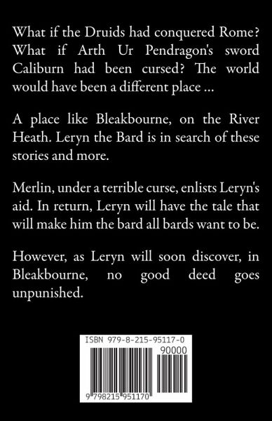 What if the Druids had conquered Rome? What if Arth Ur Pendragon's sword Caliburn had been cursed? The world would have been a different place … A place like Bleakbourne, on the River Heath. Leryn the Bard is in search of these stories and more. Merlin, under a terrible curse, enlists Leryn's aid. In return, Leryn will have the tale that will make him the bard all bards want to be. However, as Leryn will soon discover, in Bleakbourne, no good deed goes unpunished.