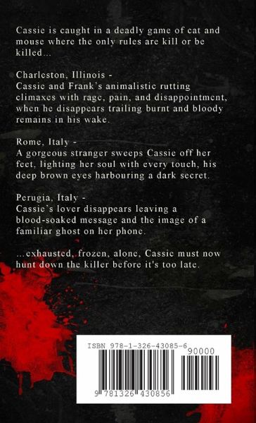 Cassie is caught in a deadly game of cat and mouse where the only rules are kill or be killed... Charleston, Illinois - Cassie and Frank's animalistic rutting climaxes with rage, pain, and disappointment, when he disappears trailing burnt and bloody remains in his wake. Rome, Italy - A gorgeous stranger sweeps Cassie off her feet, lighting her soul with every touch, his deep brown eyes harbouring a dark secret. Perugia, Italy - Cassie's lover disappears leaving a blood-soaked message and the image of a familiar ghost on her phone. ...exhausted, frozen, alone, Cassie must now hunt down the killer before it's too late.