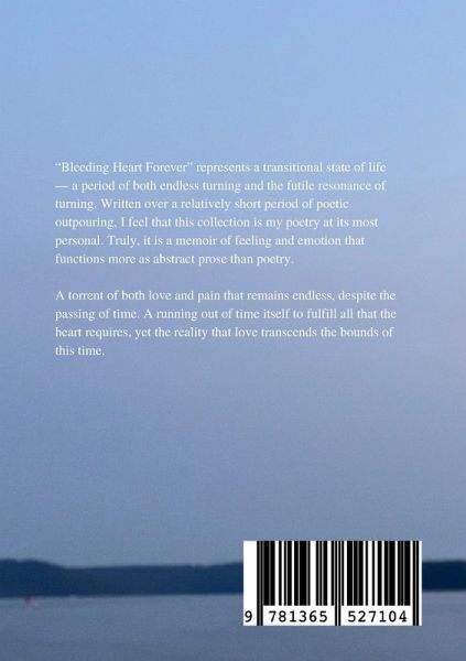 "Bleeding Heart Forever" represents a transitional state of life - a period of both endless turning and the futile resonance of turning. While not intended it be its own collection, it differs in style and theme enough to be deserving of its own vessel. Written over a relatively short period of poetic outpouring, I feel that this collection is my poetry at its most personal. Truly, it is a memoir of feeling and emotion that functions more as abstract prose than poetry. Left as it was written, I feel as though to edit and perfect would be to lose the sincerity of my thoughts at the time of writing. A torrent of both love and pain that remains endless, despite the passing of time. A running out of time itself to fulfill all that the heart requires, yet the reality that love transcends the bounds of this time.