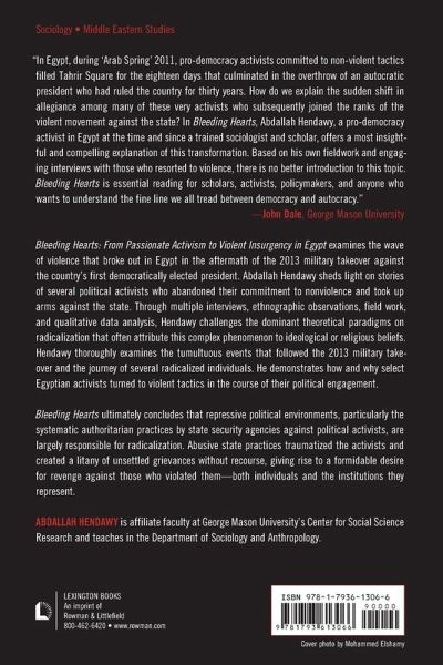 Bleeding Hearts: From Passionate Activism to Violent Insurgency in Egypt examines the wave of violence that broke out in Egypt in the aftermath of the 2013 military takeover against the country's first democratically elected president. Abdallah Hendawy sheds light on stories of several political activists who abandoned their commitment to nonviolence and took up arms against the state. Through multiple interviews, ethnographic observations, field work, and qualitative data analysis, Hendawy challenges the dominant theoretical paradigms on radicalization that often attribute this complex phenomenon to ideological or religious beliefs. Hendawy thoroughly examines the tumultuous events that followed the 2013 military takeover and the journey of several radicalized individuals. He demonstrates how and why select Egyptian activists turned to violent tactics in the course of their political engagement. The book ultimately concludes that repressive political environments, particularly the systematic authoritarian practices by state security agencies against political activists, are largely responsible for radicalization. Abusive state practices traumatized the activists and created a litany of unsettled grievances without recourse, giving rise to a formidable desire for revenge against those who violated them - both individuals and the institutions they represent.