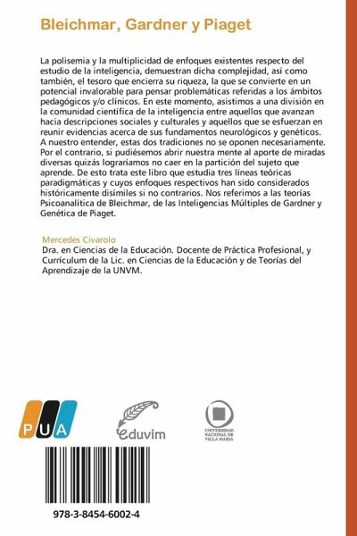 La polisemia y la multiplicidad de enfoques existentes respecto del estudio de la inteligencia, demuestran dicha complejidad, así como también, el tesoro que encierra su riqueza, la que se convierte en un potencial invalorable para pensar problemáticas referidas a los ámbitos pedagógicos y/o clínicos. En este momento, asistimos a una división en la comunidad científica de la inteligencia entre aquellos que avanzan hacia descripciones sociales y culturales y aquellos que se esfuerzan en reunir evidencias acerca de sus fundamentos neurológicos y genéticos. A nuestro entender, estas dos tradiciones no se oponen necesariamente. Por el contrario, si pudiésemos abrir nuestra mente al aporte de miradas diversas quizás lograríamos no caer en la partición del sujeto que aprende. De esto trata este libro que estudia tres líneas teóricas paradigmáticas y cuyos enfoques respectivos han sido considerados históricamente disímiles si no contrarios. Nos referimos a las teorías Psicoanalítica de Bleichmar, de las Inteligencias Múltiples de Gardner y Genética de Piaget.